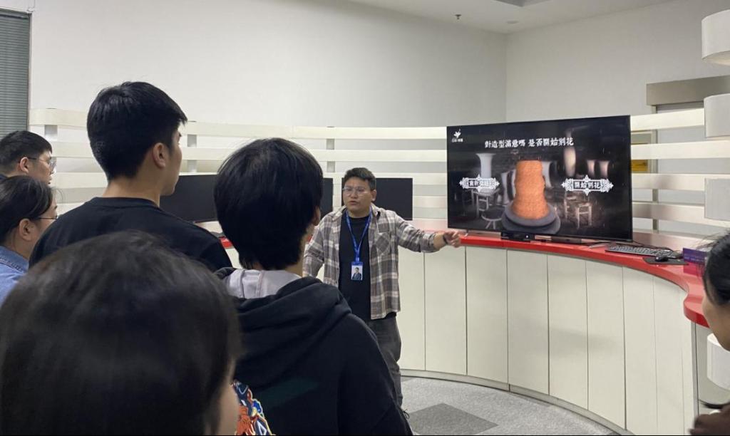 行至教学区,工作人员为员工讲解云和数据的教学模式、课程特色、团队力量、学员就业等情况的介绍,并带领大家观摩云和数据学员优秀作品。
