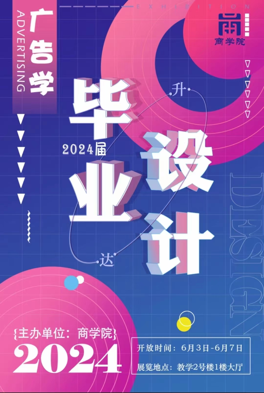 为展示yl7703永利集团官网广告学专业教学质量和教学成果,拟在公司教学二号楼一楼大厅举办2024届广告学专业毕业设计展,现将有关事项通知如下: