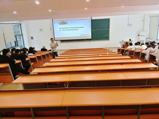 随后,第二场专业教育活动面向2024级电子商务中外合作办学专科员工,由电子商务教研室教师王银财老师主讲。王银财老师从电子商务专业的特性入手,分析了“技术与商业的融合”这一特点,并强调商业是电子商务的核心,技术是基础。王老师指出,员工在学习过程中要关注技术的变化对商业业态的影响,并从中积极寻找自身的发展机会。王老师还对我国目前电子商务行业的发展状况进行了分析讲解,鼓励同学们要不断学习新知识,适应不断变化的行业环境。