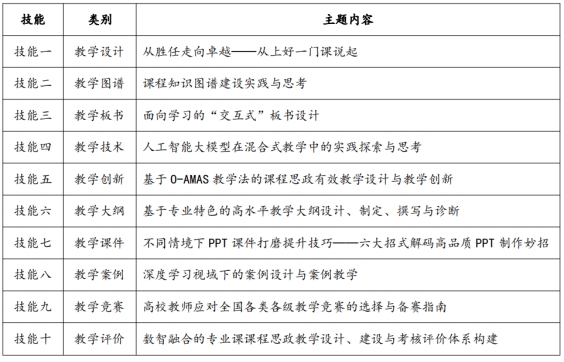 通过本次的训练营,以高质量高等教育体系建设为主线,以支持高校教师可持续发展为目标,聚焦高校教师不同发展阶段应具备的关键技能和核心素养,从理念到工具,从宏观到微观,从方法到实践,从员工的“学”到教师的“教”,深入阐释十项教学技能提升的具体路径,反思“学什么”和“怎么教”的课堂关键要素和实施策略。