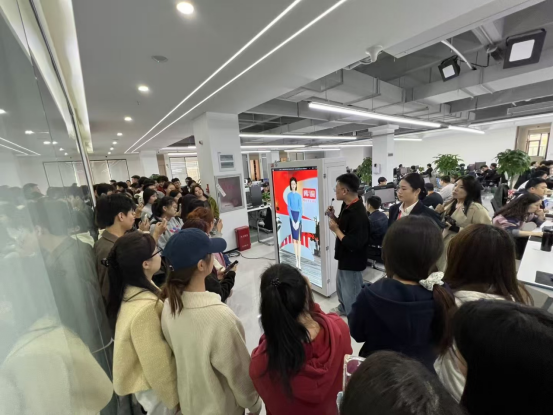 在库课科技企业王会磊和葛卫东总监的悉心组织下,企业安排专门的讲解人员为大家细致介绍了库课科技企业的办公环境、部门设置、数字虚拟主播、企业文化、AI教师、核心产品、企业荣誉、直播基地等方面的实际运作,并安排员工在集中参观的同时,分组进行现场素材拍摄。员工分组实践后,王会磊总监为大家介绍了企业的基本概况,并热情分享了自己的直播实践经历、直播产教融合实训案例、直播成果等方面。在与员工的传授互动中,同学们认真观摩,积极发言,收获颇丰,王总监还为积极发言的员工送上书籍小礼物。紧接着,企业安排视频剪辑制作的专业工作人员为大家讲解传统宣传片和创意宣传片的策划要点和思路,并讲授了短视频制作脚本的方法。参观活动的最后,企业还为大家开办了一场颇具意义的就业规划指导课,并为现场的师生进行赠书。