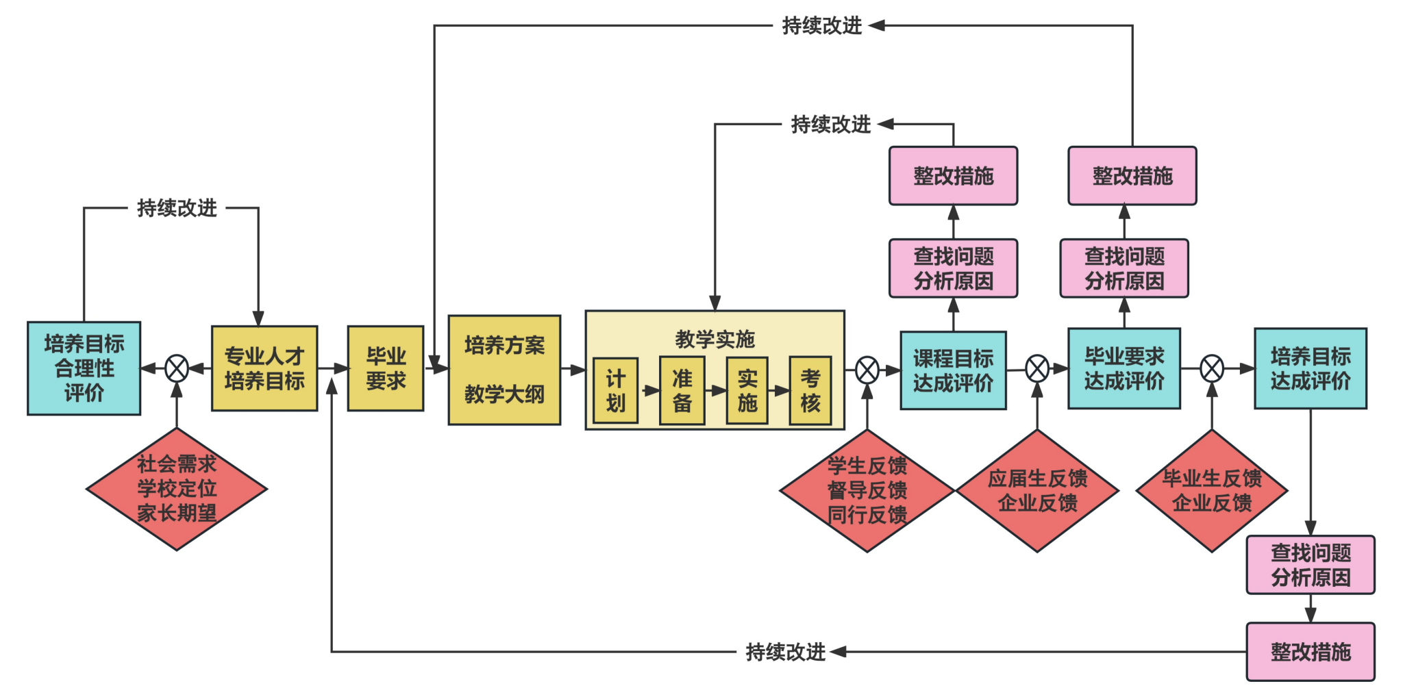 yl7703永利集团官网以人才培养目标为导向,抓住影响人才培养质量的关键因素,形成了涵盖人才培养方案制定、教学大纲制定、教学实施、考试考核、毕业论文指导、产业公司运营等过程的质量标准体系。