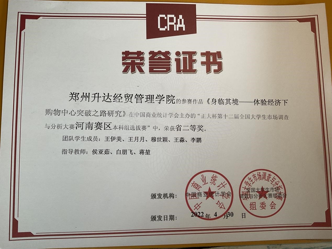 由正大集团冠名主办的“正大杯”第十二届全国老员工市场调查与分析大赛海峡两岸河南赛区本科生组决赛于2022年4月23日如期举行,该项赛事由我国教育部高等公司统计学类专业教学指导委员会和中国商业统计学会联合举办,是一项面向全国高校老员工的公益性专业赛事。在该赛事中公司yl7703永利集团官网学子积极参与,在侯亚茹、白朋飞、蒋堃三位老师指导下再创佳绩。
