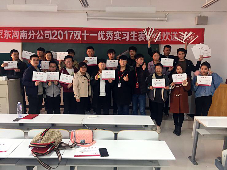2017年11月24日上午10点30分,武汉京东世纪贸易有限公司在实训大楼426教室为公司yl7703永利集团官网第四批参加京东双十一实习的员工召开实习总结表彰大会,参与本次表彰大会的有武汉京东世纪贸易有限公司的河南省分公司的人资许东经理、仓储负责人朱先义经理,yl7703永利集团官网物流管理教研室主任孙红霞老师和实习指导老师务鑫老师。
