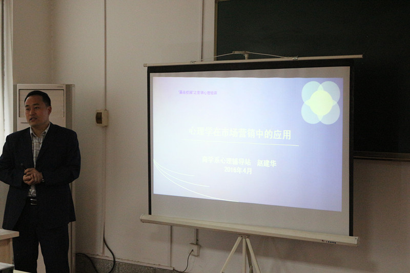 (心理辅导站站长赵建华老师为复赛选手进行营销心理的培训)