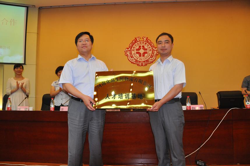 本次活动由田振中老师主持。仪式第一项,由张金安副经理发表讲话,他全面介绍了升达公司的办学理念和文化精神,着重强调了市场营销系的独有专业及教学特色,还附加传达了众品企业的企业文化及企业规模;其次,众品企业赵雷副总经理发表讲话,他表示对众品·升达的合作抱以真切期待,坚信通过校企合作培养更多有用人才;紧接着,由赵雷副总经理和张金安副经理签订众品·升达校企合同,众品企业赠与升达公司“众品生鲜物流有限公司人才培训基地”牌匾。随后,赵雷副总经理为师生们做了一场关于物流行业的演讲报告,主要从中国物流、农产品物流到众品物流这一冷链物流的方面来讲,详细介绍了众品冷链物流的配送能力、运输能力、供应链能力及众品的人才理念。最后,由赵雷副总经理、人力资源部副部长宁波、综管部副部长魏彭歌和同学们互动,详细解答了关于众品用人专业化、仓储等岗位和职业规划的问题,并得到了同学们的肯定。以市场营销系于平主任对本次签约作以总结,她表明校企合作就是“校走企,企走校,推动教研作用”,并对本次签约成功表示祝贺。至此,本次签约仪式也落下了帷幕。