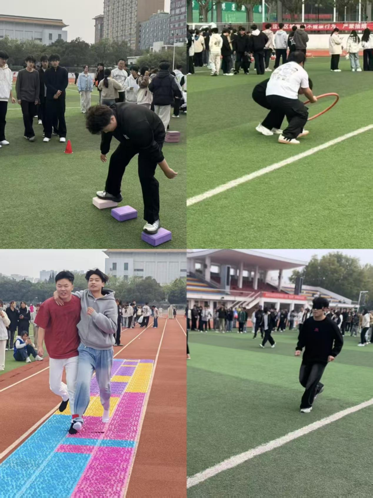 珠行万里、企鹅漫步、无敌风火轮、八字跳绳四个项目同样精彩纷呈。珠行万里要求队员们精准配合,通过默契传接将小球顺利运达终点;企鹅漫步妙趣横生,参赛者憨态可掬的动作带来欢声笑语;无敌风火轮彰显团队协作精神,队员们步调一致、齐心协力向前推进;八字跳绳则展现出青春的活力与节奏,选手们轻盈的身姿如同跃动的音符。