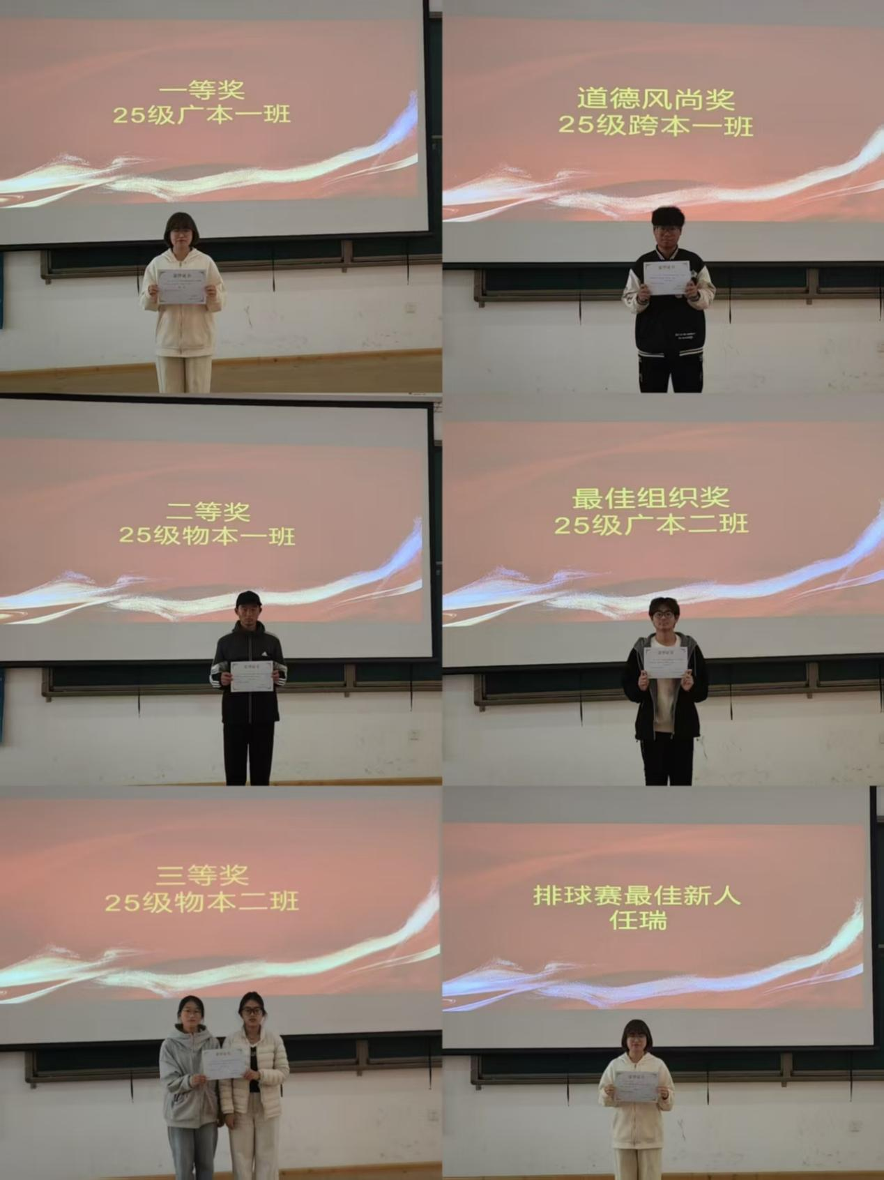 青春拼搏的激烈氛围与团结友爱的动人温情相互交织,共同描绘出本次比赛的动人画卷。赛场上队员们身手矫健、斗志昂扬,场边啦啦队助威声此起彼伏,师生共同见证了无数精彩瞬间。25级跨本1班与25级物本2班的对决成为赛事焦点。双方队员全力以赴,你来我往的攻防展现出永不言败的体育精神。最终25级跨本1班虽以一分之差惜败,但赛后双方击掌致意的场景,生动诠释了“友谊第一”的赛事理念。最终,25级广本1班代表队凭借稳定发挥摘得桂冠,25级物本1班、25级物本2班分获亚季军。