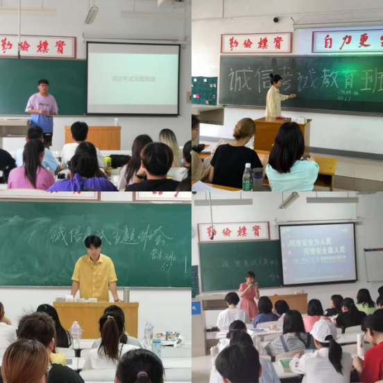 临近期末考试,各班级召开了诚信考试主题班会,在《诚信考试承诺书》上签名,坚定诚信信念,从而促进班风、学风、考风向更健康的方向发展。