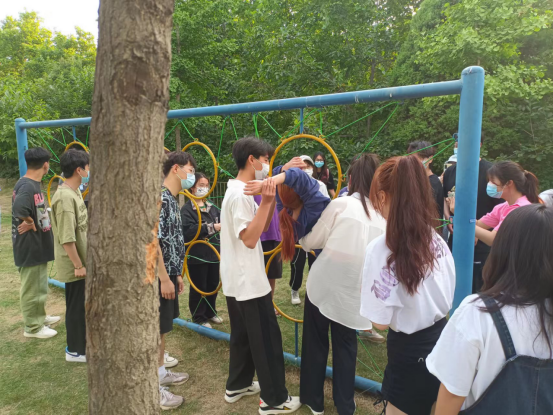 本次活动分为“风采展示”、“盲人方阵”、“穿越电网”、“天黑请闭眼”、“两人三足”五个项目。宋老师把这些项目的规则和意义对同学们进行了讲解。接下来同学们在活动开展中积极展现自己,与自己的队员积极交流商议自己的对策,一个一个顺利地完成了各项目的挑战。在最后活动总结的过程中宋老师对同学们的表现进行了肯定,并希望同学们以后将素质拓展活动带进班级,让更多的同学参与到活动中来,全面提高公司同学的心理健康水平。