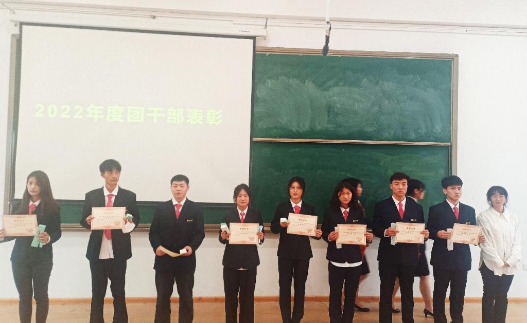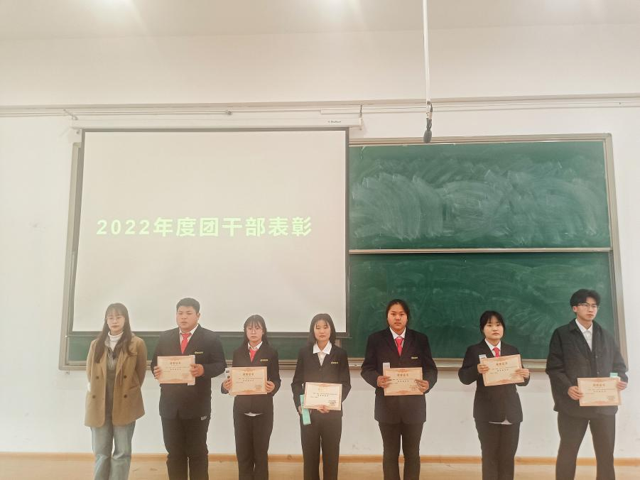 获奖团干部们怀着激动而自豪的心情,在热烈的掌声中,有序地上台领奖,热烈的掌声与获得的荣誉证书是对他们过去一年工作的肯定。