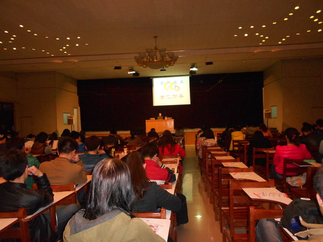 2013年3月27日下午6点半,由市场营销系外联部举办的“就业前景”讲座在龙湖报告厅圆满结束,金之汇财务公司负责人张丽霞老师给我们带来了系统的讲解。营销系员工会成员及100多位同学参加了此次讲座。
