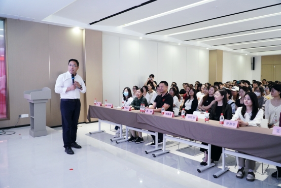 首先,师生在库课科技工作人员的带领下,参观库课科技的工作环境,了解库课科技工作情况及工作流程等。随后,在库课科技三楼会议室播放了公司宣传片,库课科技集团董事长董国良先生进行致辞,王会磊总监讲解直播的相关知识。郭峰书记对库课科技表示感谢,希望能够进一步加强校企合作,实现校企双赢。