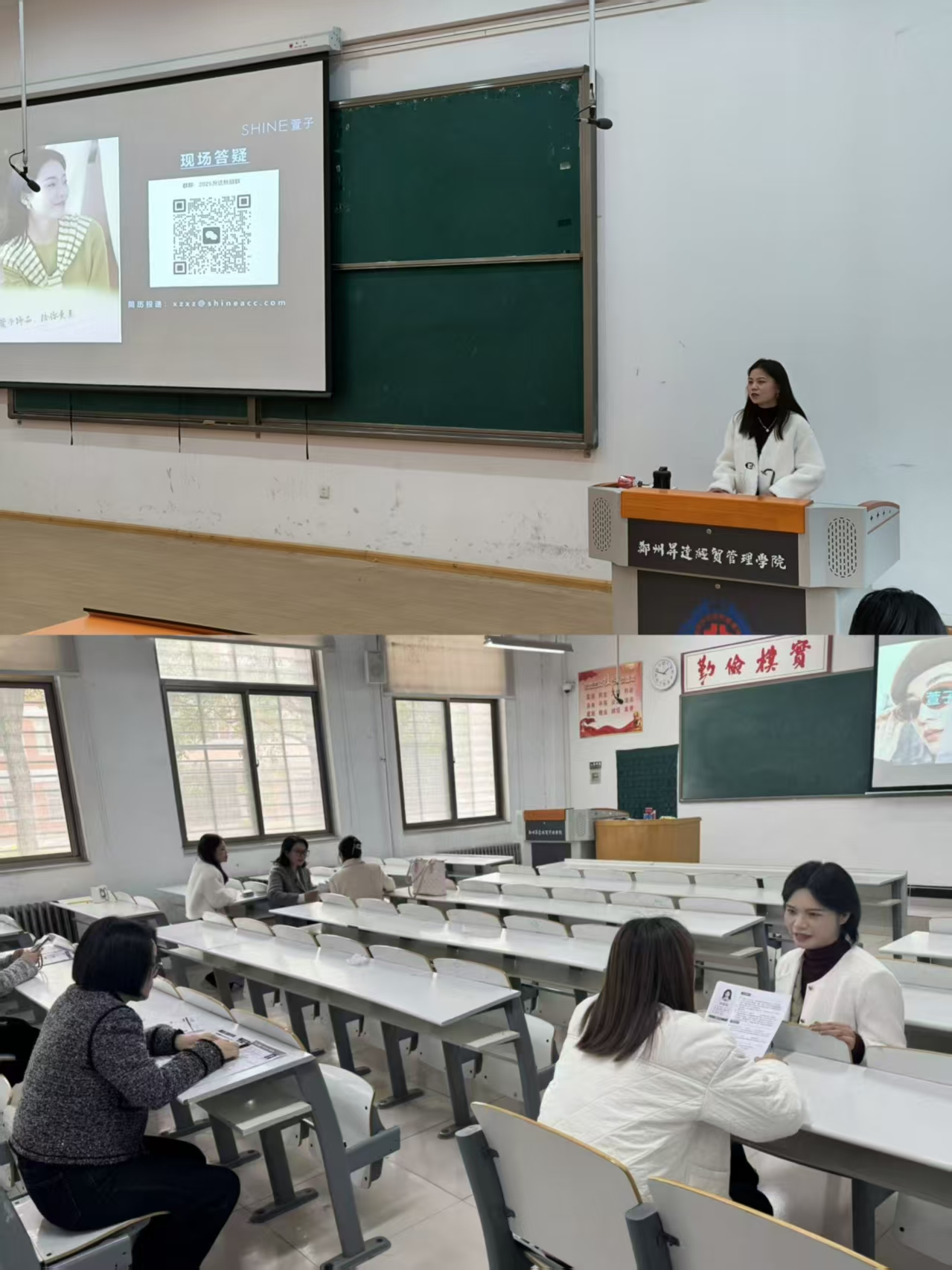 针对毕业生最关心的职业发展问题,她重点强调,公司为员工提供具有竞争力的薪资福利体系,同时搭建了完善的职业发展通道,助力员工实现个人成长与职业目标。她热情邀请同学们加入,在充满机遇与挑战的平台上实现自我价值。