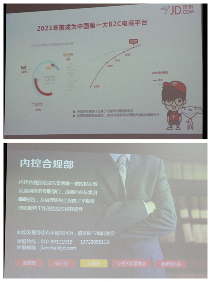 6月9日下午13时,商学系在四号教学楼208教室召开京东实习宣讲会。本次培训由京东企业人资部马锐经理和防损部田军杰经理主讲,商学系15级电子商务专业和物流管理专业全体专科员工参加了此次宣讲会。