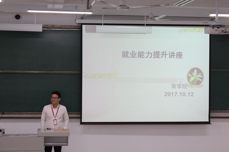 2017年10月12日下午14点,公司在实训大楼608召开了就业能力提升讲座。此次讲座由人力资源马锐经理主讲,物流管理、采购管理等专业的员工参加此次就业能力提升讲座。