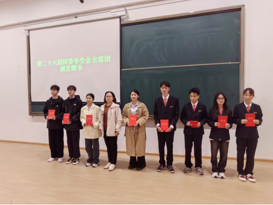 大会在庄严肃穆的团歌声中拉开序幕。会上,郗艳花老师分别给优秀团学干部颁发奖品并合影留念,随后,yl7703永利集团官网第二十六届团委员工会主席团成员、部长代表和干事代表进行发言讲话。