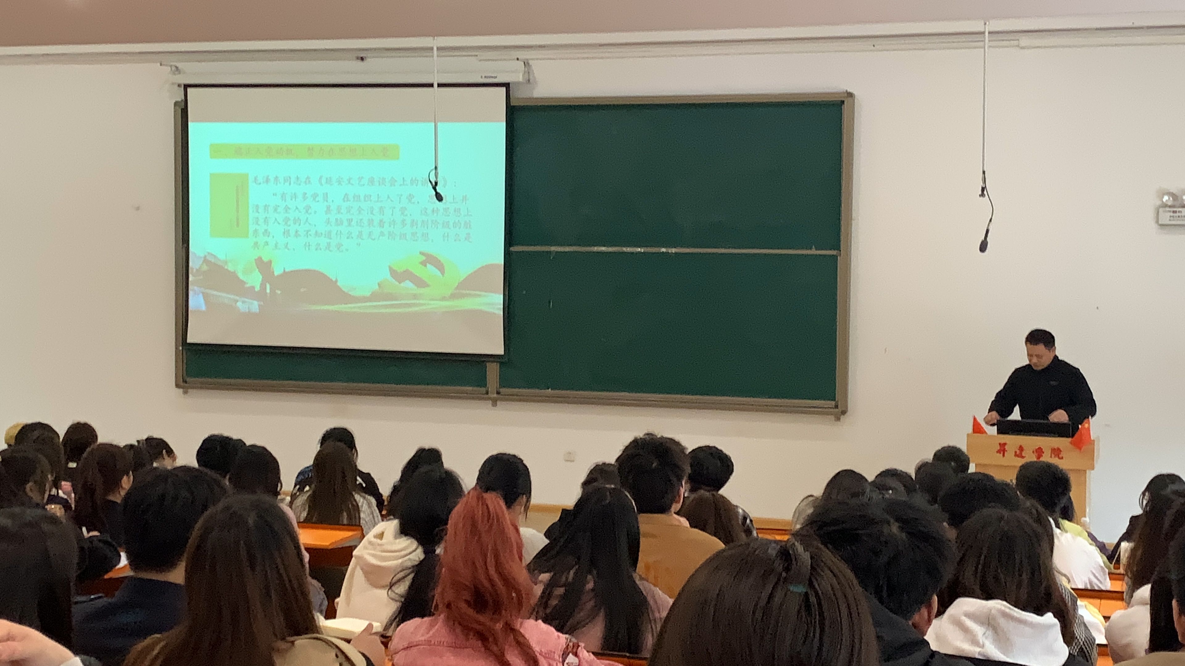 随后,郭峰同志以“坚定理想信念,端正入党动机”为题,为本次党课学员讲授了第一课,从“端正入党动机,努力在思想上入党”、“认识党员标准,切实在行动上入党”、“明确入党含义,做好入党各项准备”三个方面进行授课,让全体学员明确了今后的努力方向。