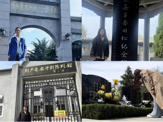 4月4日至4月6日清明节期间,广大师生响应号召积极参与红色旅游,瞻仰革命英雄、传承红色基因。大家结合实际利用假期在各地烈士陵园、毛泽东故居韶山、中国共产党第一次全国代表大会遗址、焦裕禄纪念园、刘少奇在开封陈列馆等红色旅游地缅怀烈士,抒发哀思。