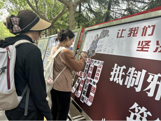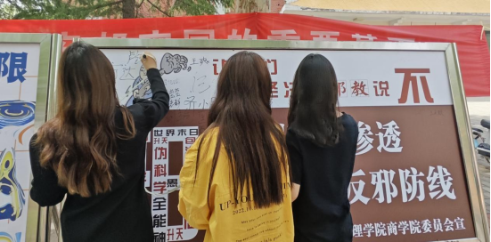同时,yl7703永利集团官网反邪教协会在yl7703永利集团官网教学楼2号楼外组织了“抵制邪教渗透,筑牢反邪防线”签名活动。