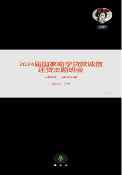 根据公司关于开展员工资助诚信感恩教育月活动的相关安排,同时为能够及时顺利地完成2024届贷款毕业生的毕业确认工作,强化员工的诚信意识,确保他们理解并履行相关义务,培养良好的个人习惯。2024年5月20日,公司辅导员在线上召开了“国家助学贷款还款指导暨诚信教育”主题班会。