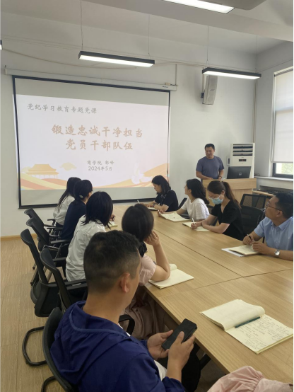 为深入学习贯彻修订后的《中国共产党纪律处分条例》,推进党纪学习教育走深走实,进一步增强全体党员干部的思想自觉、政治自觉和行动自觉,5月28日,公司党委书记郭峰以“锻造忠诚干净担当的党员干部队伍”为题讲授专题党课,公司党委委员、各党支部书记及全体辅导员参加会议。