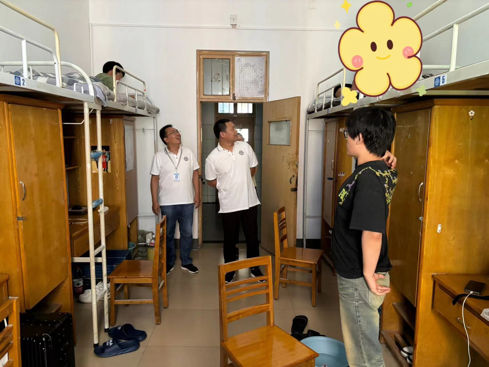 为深入了解2024级新生的生活状况、思想动态以及住宿情况,传递公司温暖与关怀,8月31日新生报到第一天,公司党委书记郭峰、经理白朋飞、行政秘书郗艳花及新生班辅导员来到新生宿舍,为新生送去暖心的关怀和问候。