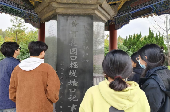 随后,大家怀着沉重的心情,来到了黄河花园口风景区一九三八年扒口处和花园口记事广场。这是花园口历史的再现,也是中华民族苦难史的写实。同学们在这里驻足凝视,心中感慨万千,反思历史的教训。