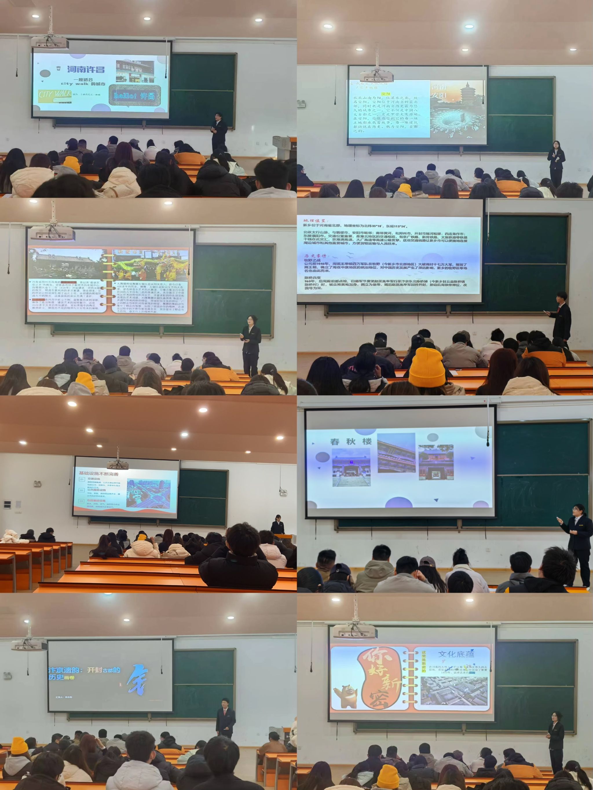 随后,活动进入了精彩的分享环节。来自不同地区的同学们纷纷上台,以PPT、视频等形式,展示了自己家乡的风土人情、历史文化以及近年来的发展变化。他们深情讲述了自己对家乡的深厚情感,分享了家乡人民在新时代中的奋斗历程和取得的辉煌成就。