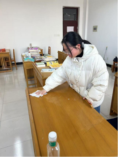 员工党员们在向自习室里部分正在自习的同学们说明了情况后,开始了有条不紊的清扫工作,在员工党员的齐心协力下,清扫工作进展很快,经过一番认真细致的清理,自习室变得更加整洁卫生。他们的付出得到了考研员工的认可,考研学子对此次参与清扫工作的党员们表示感谢。