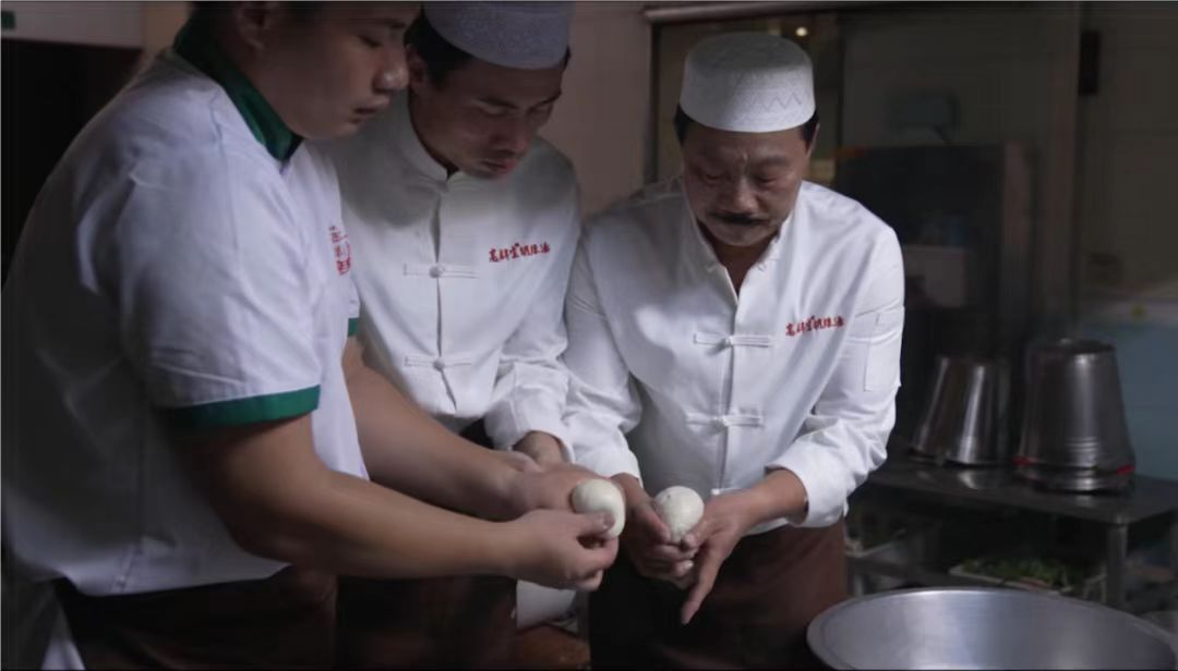 调研团队来到了开封鼓楼的“第一楼”,拜访了非遗技艺传承的第五代传人,探寻美食背后的传承与创新。凌晨三点,团队成员跟随传承人王师傅来到开封鼓楼街的“第一楼”后厨,此时后厨已经亮起灯。王师傅邀请团队成员体验揉面,切身感受纯手工制作非遗美食的不易。团队成员T恤被汗水浸透了一半。“老员工能吃苦不?这老酵面得揉够300下,劲儿才透!”王师傅的手掌布满老茧,却把面团甩得像在跳舞。王师傅说,一笼合格的开封小笼包必须“18褶、25克、90秒蒸熟”,店里最老的蒸笼用了40年,竹香都渗进了面皮。团队成员百感交集,没想到一个小小的包子后面竟然有这么大的学问。这也更印证了非遗美食传承技艺的名不虚传。