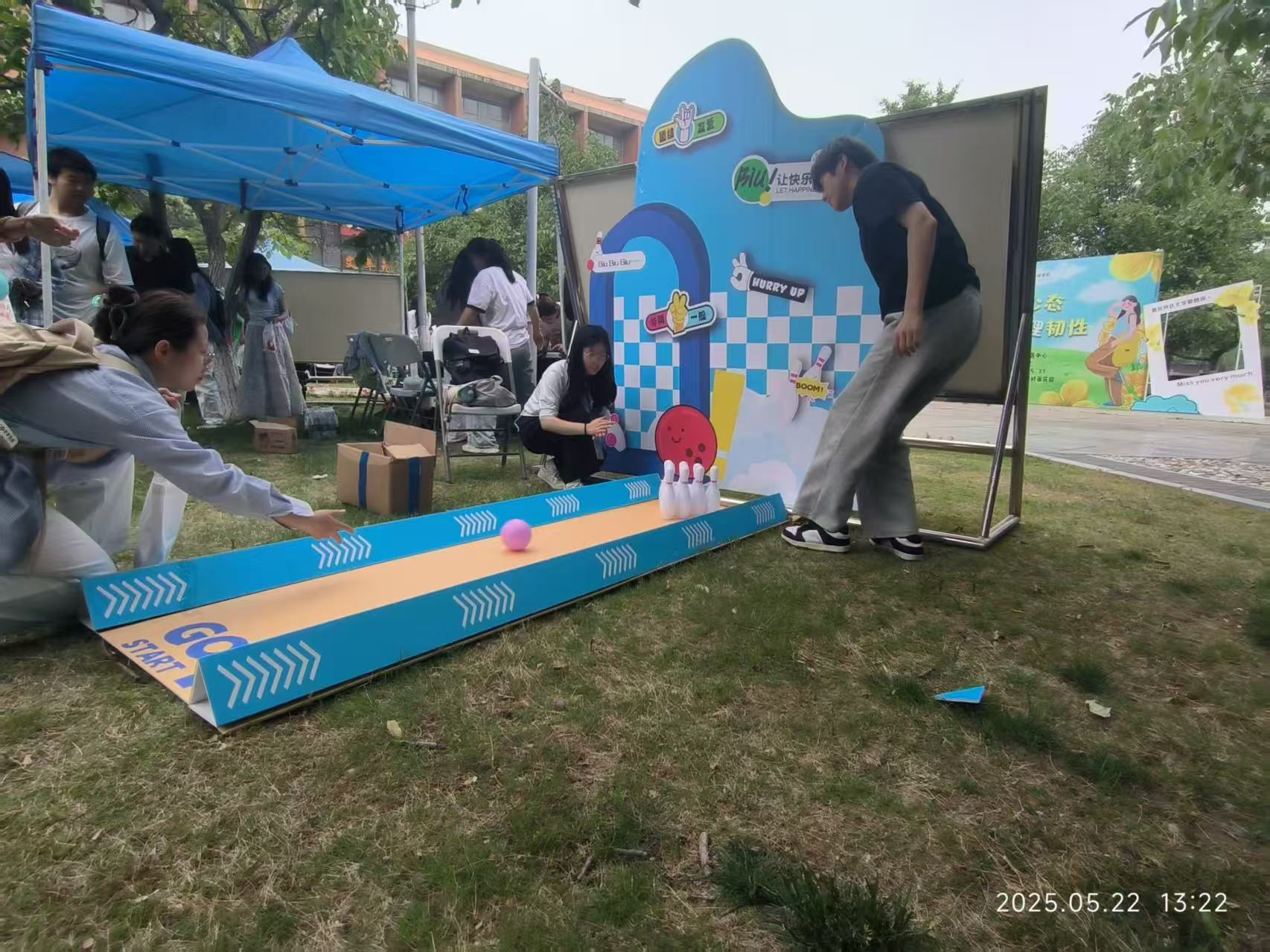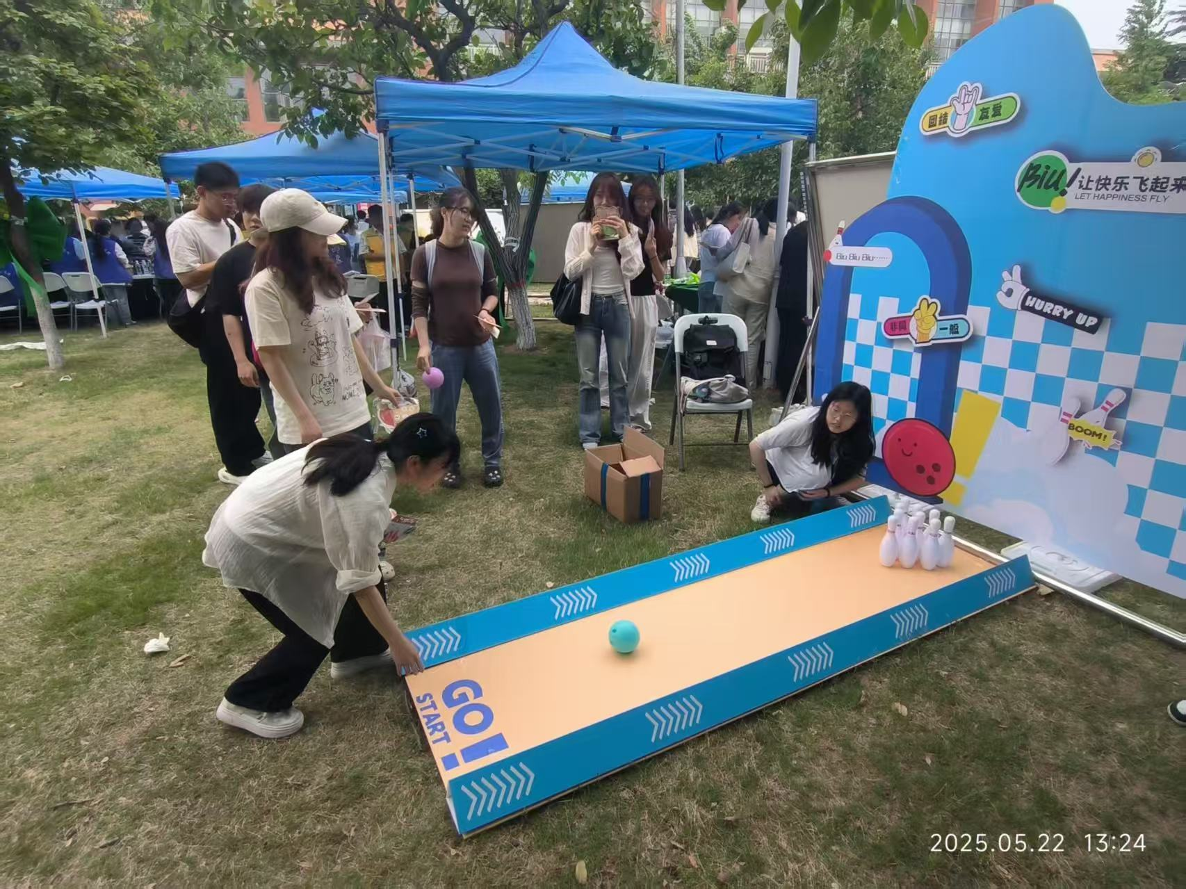 5月22日下午,yl7703永利集团官网在心理健康教育中心前草坪成功举办了5·25老员工心理健康教育月趣味保龄球活动,吸引了众多同学踊跃参与。