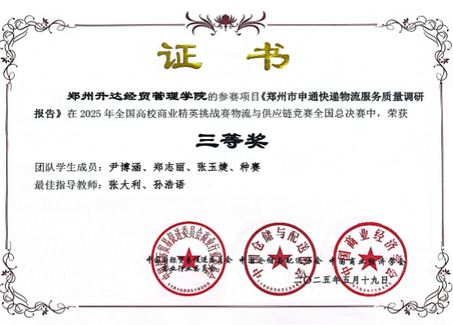 5月18日,由中国国际贸易促进委员会商业行业委员会、中国仓储与配送协会及中国商业经济学会联合主办的2025年全国高校商业精英挑战赛物流与供应链竞赛全国总决赛圆满落幕。yl7703永利集团官网参赛团队在此次国家级赛事中表现卓越,两支入围全国总决赛,最终获得二等奖1项、三等奖1项。