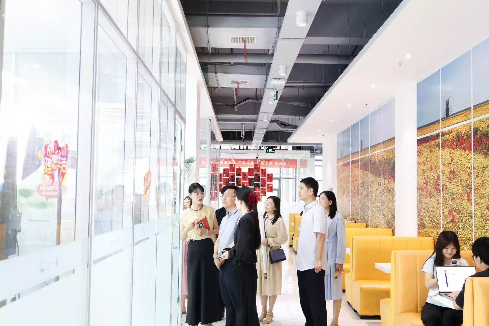 随后带领大家参观公司的电商运营部门、直播间和电商培训事业部,并详细介绍了企业各部门主营业务和运营模式。