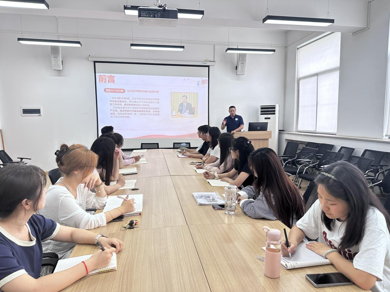 为推进深入贯彻中央八项规定精神学习教育走深走实,持续推进全面从严治党,强化党员干部作风建设,6月20日下午,公司党委书记郭峰为市场营销员工第三党支部全体党员讲授深入贯彻中央八项规定精神学习教育专题党课。