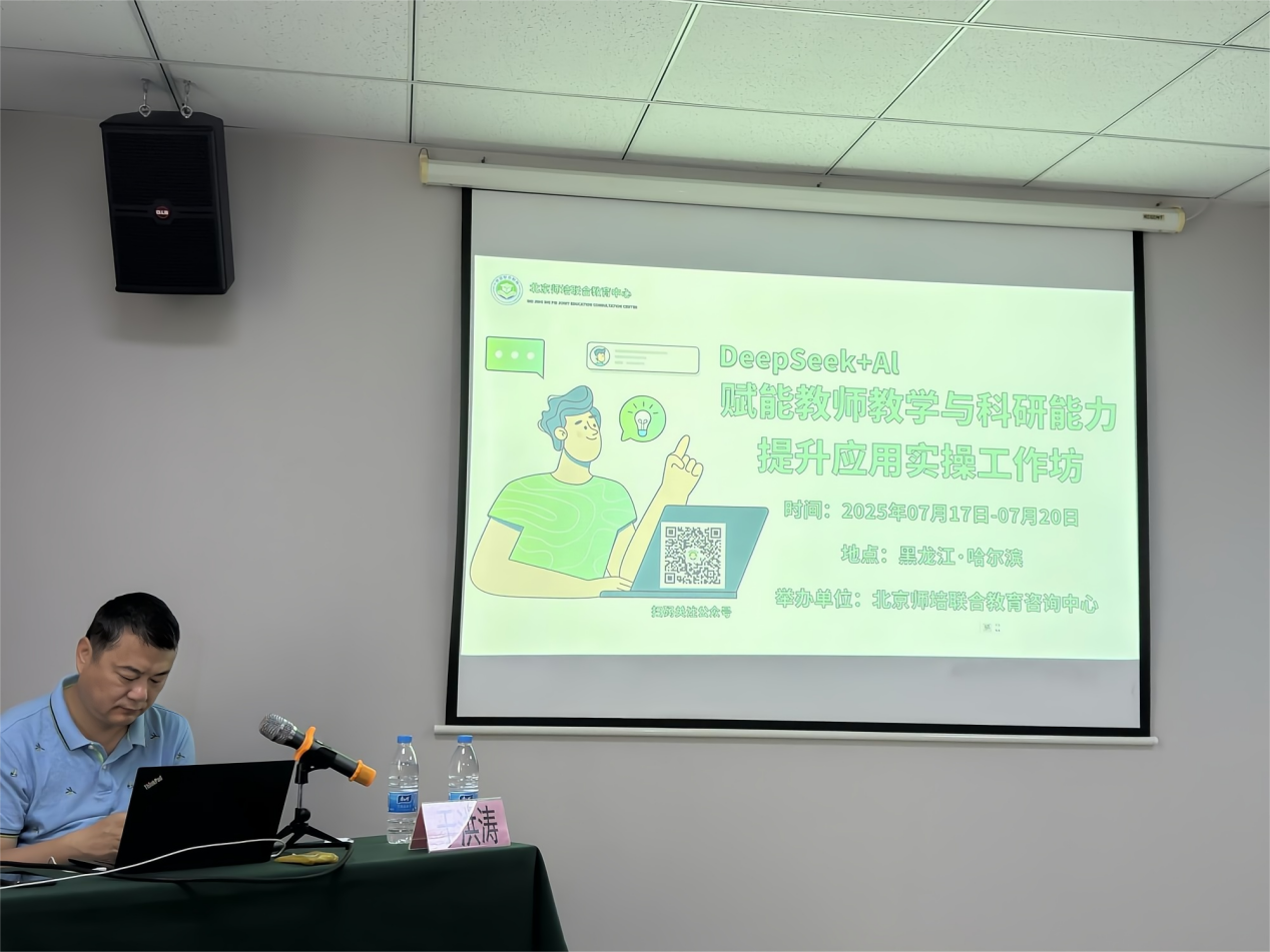 7月18日,培训主办单位特邀内蒙古民族大学于洪涛教授主讲《DeepSeek+AI赋能教师教学能力提升》与《DeepSeek+AI财能教师科研能力提升》两场主题课程。培训从DeepSeekAI集成工具箱的下载安装入手,逐步深入讲解提示词撰写技巧,指导教师运用DeepSeek辅助教案撰写,按学习格式生成教案;借助AI生成PPT课件,涵盖主题生成、大纲构建、视频及文档图片制作,还可对已有PPT美化;利用AI生成期末考试、单元测试题并保存为WORD格式,辅助制作微课,搭建课程陪练智能体,绘制可编辑思维导图与流程图,以及开展毕业论文批改评价等实操内容,让教师沉浸式掌握AI赋能教学全流程技能。