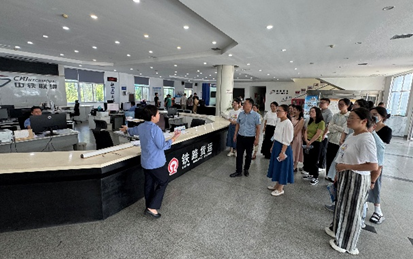 随后,全体人员前往中铁联集(郑州中心站),深入了解中欧班列的实际运作模式,重点考察了海铁、公铁联运的装卸货作业流程、现代化物流设备设施配置以及报关报检等关键环节的实操要求。此外,教师团队还实地参访了空箱堆场与铁海联运服务大厅,进一步熟悉了中铁联集(郑州中心站)的主要业务体系、工作流程及具体内容。