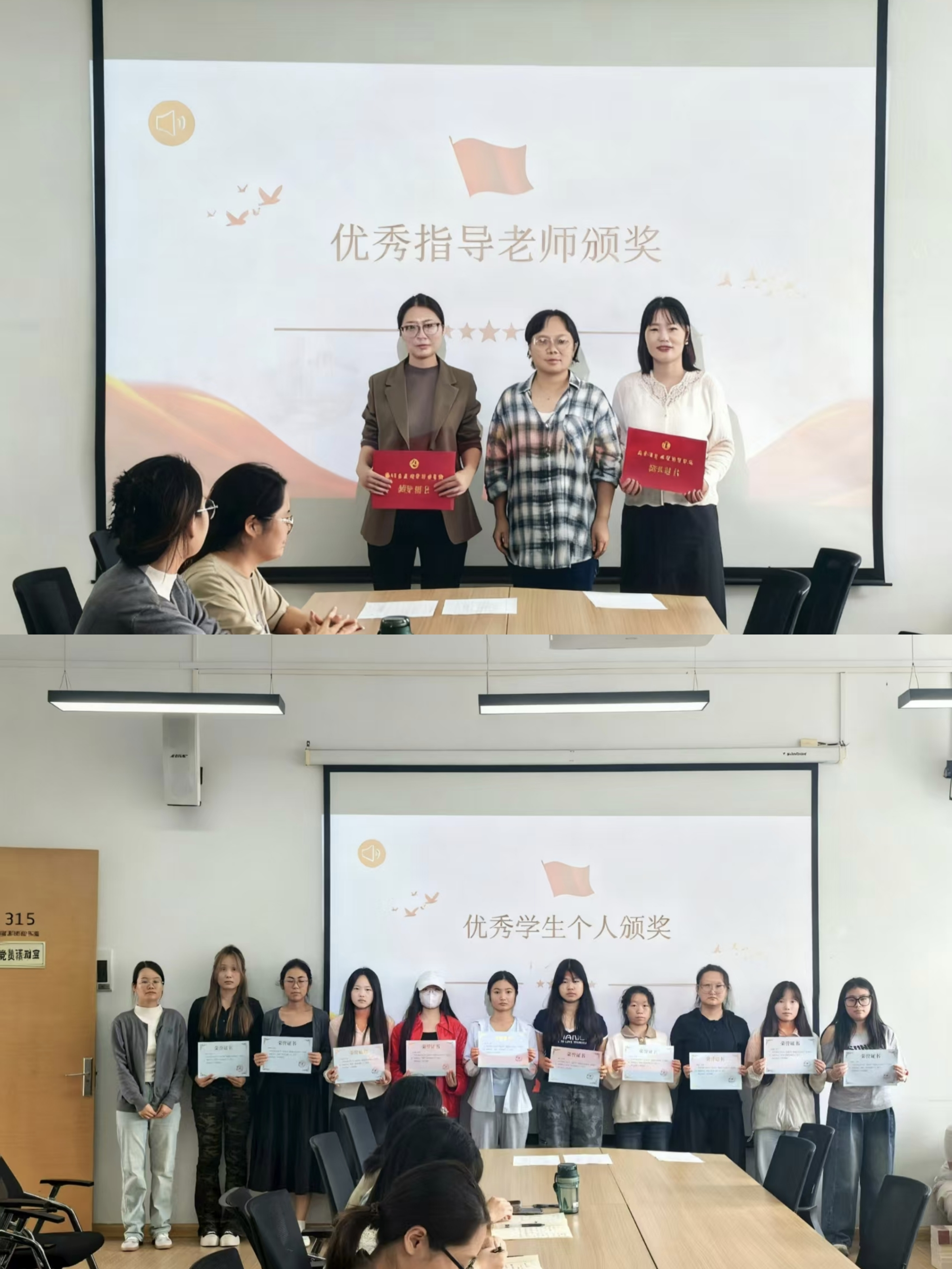 暑假期间,同学们积极参加了社会实践活动,将自己的所学知识运用到实践中。大会上,主持人首先介绍了社会实践活动的背景与意义,并宣读了表彰名单。张艺培老师为“优秀实践个人”颁发荣誉证书,郗艳花书记为“优秀指导老师”颁发荣誉证书。随后,贾博楠作为优秀员工代表发言,结合自身实践经历,通过5分钟的PPT展示分享了社会实践的收获与感悟。辅导员胡好好在发言中充分肯定了同学们的表现,并鼓励更多员工积极投身实践、锻炼综合能力。最后,郗老师对本次活动进行总结,充分肯定实践成果,并希望获奖同学在班级积极宣传志愿服务精神。活动末尾,主持人对大会进行总结,再次强调社会实践在育人过程中的重要作用,呼吁同学们以优秀员工为榜样,不断提升社会责任感和实践能力。