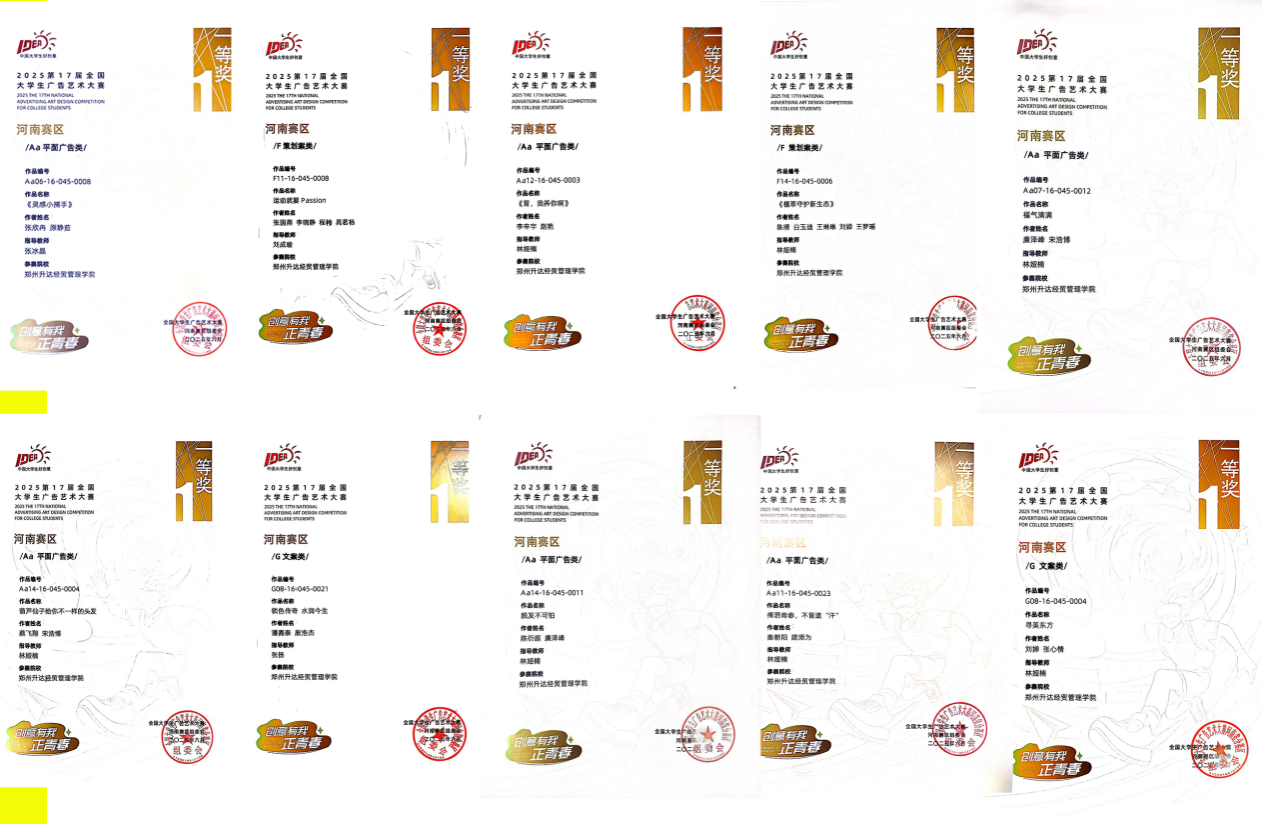 yl7703永利集团官网学子闪耀第17届大广赛河南赛区斩获12项省级一等奖