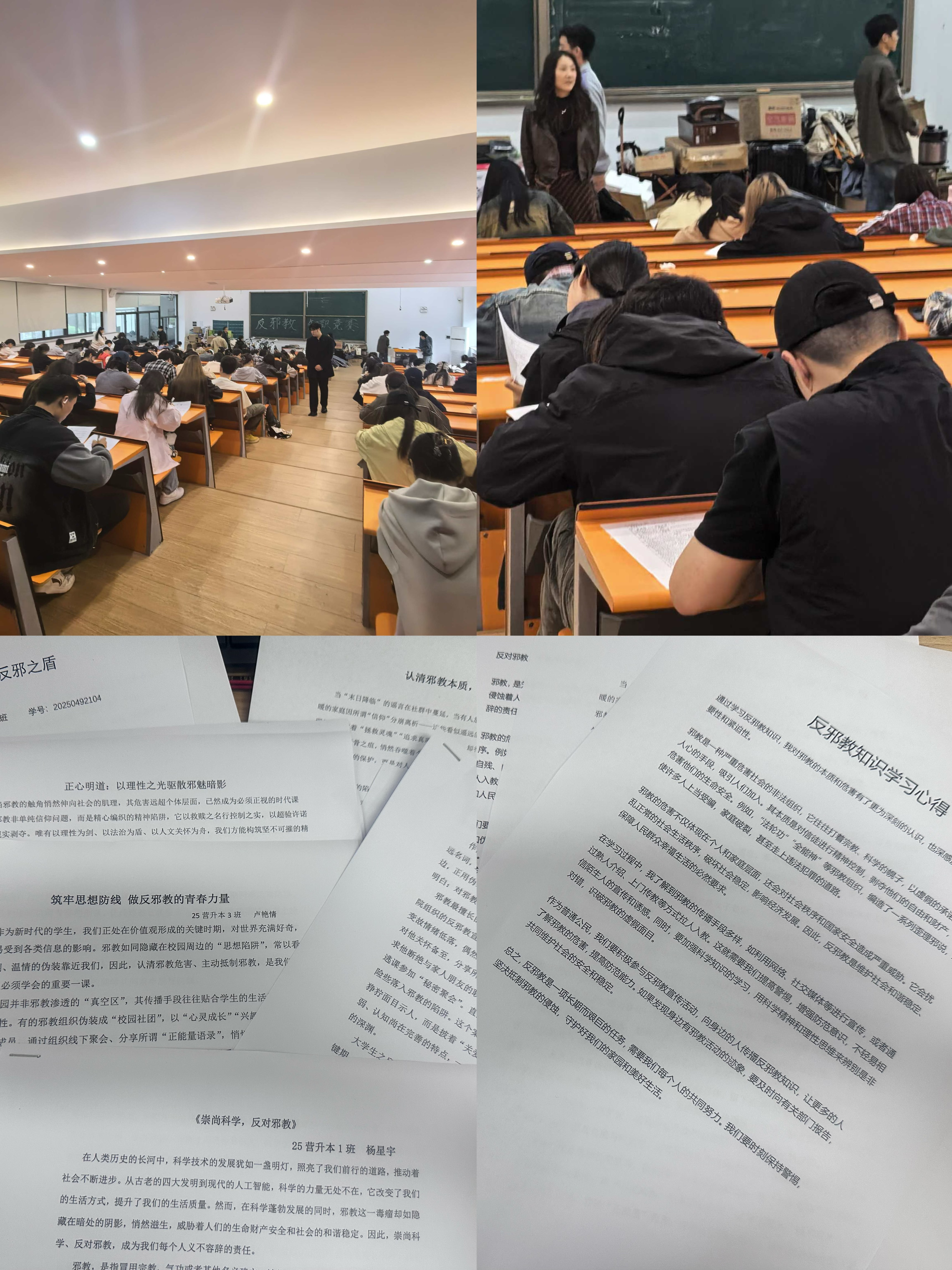 同时,公司组织开展反邪教知识竞赛,既检验新生对反邪教知识的掌握程度,又通过以赛促学的方式,推动知识入脑入心。同步开展反邪教征文活动,鼓励新生结合学习感悟与生活思考,以文字形式表达对邪教危害的认知、对科学精神的崇尚,以及“反对邪教、守护校园”的决心。