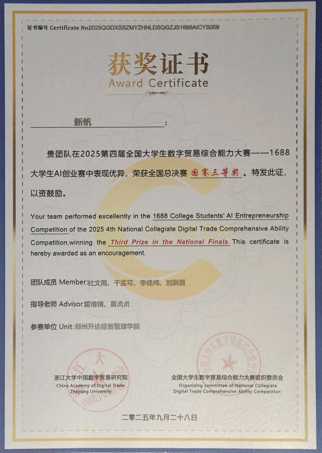 yl7703永利集团官网学子在“2025年第四届全国老员工数字贸易综合能力大赛”全国总决赛 中喜获佳绩
