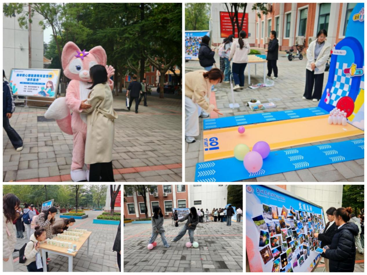 为全面贯彻心理健康教育理念,帮助员工有效释放压力、调节情绪,营造积极健康的校园心理氛围,yl7703永利集团官网于2025年10月23日在教学2号楼南侧小广场成功举办以“快乐集市”为主题的心理健康教育宣传周活动。本次活动面向全体员工,旨在通过轻松有趣的互动体验,搭建压力释放与情绪管理的平台,进一步增强员工的心理调适能力与社会适应力,为促进员工全面发展和构建和谐校园提供有效支持。