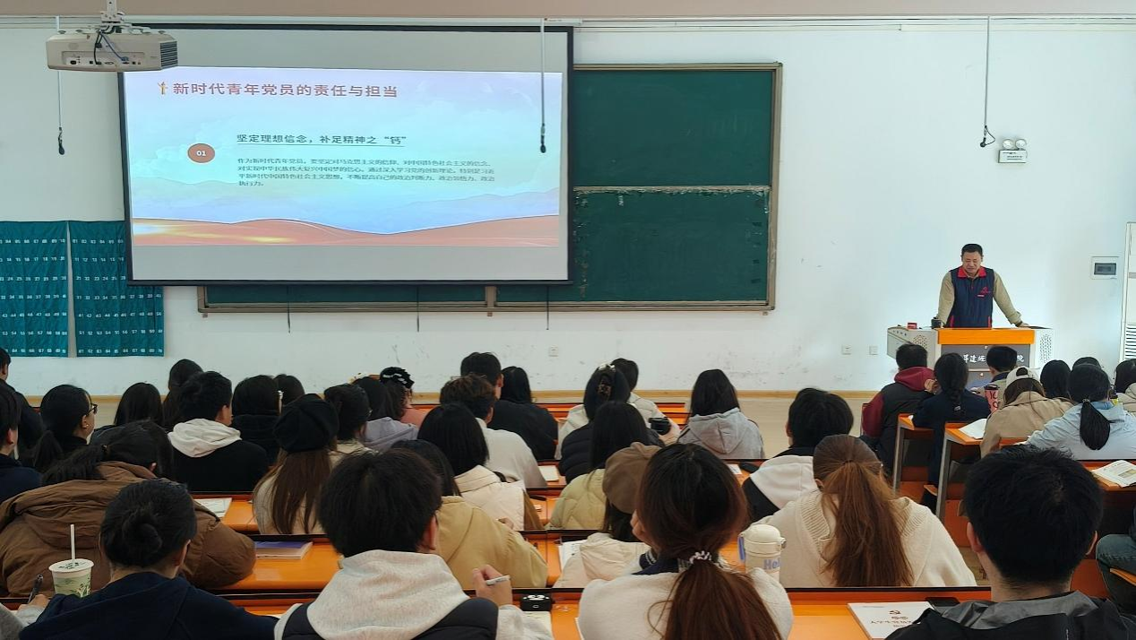 10月28日中午,公司党委书记郭峰以《筑牢信仰之基,勇担时代使命》为主题在教学楼2号楼116教室为第22期党课学员讲授专题党课。