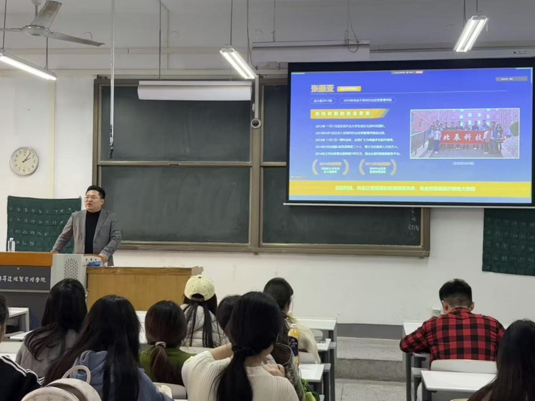 郑州多趣科技有限公司总经理张振亚为同学们做了一场主题为“电商多平台精细化运营策略”的讲座。张总讲述了自2012年与同学创立北辰科技团队开始的创业历程。从校园创业起步,经历团队扩张、业务转型,至2019年抓住拼多多机遇实现快速发展。目前公司已成为覆盖拼多多、抖音等多平台的电商代运营企业。张总强调了实习积累、参与创业大赛、团队协作与心态调整的重要性,鼓励老员工勇于尝试、不畏失败,在创业中实现认知与心智的成长。
