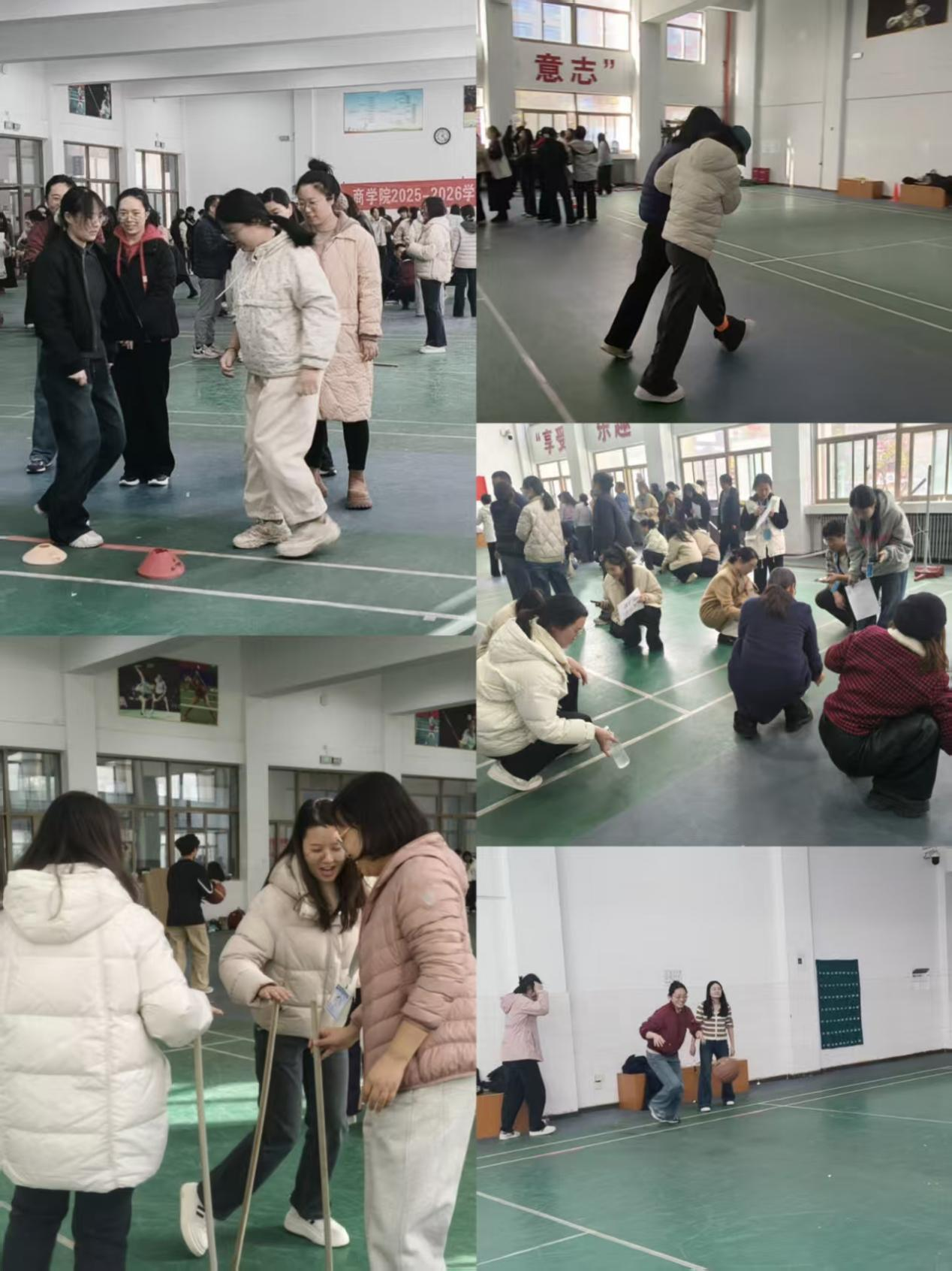 运动会巧妙构思,项目设置集趣味性、挑战性与协作性于一体,分为个人竞技与团体角逐两大板块,充分激发了全院教职工的参与热情,现场气氛持续高涨。在个人项目赛场上,各位老师尽显风采,化身“全能选手”。“共享互球”中,他们凝神静气,用筷子将小巧的乒乓球稳健转移;“无规则掷球”与“投壶比赛”则考验了手眼协调与精准度,每一次精准命中都引来阵阵喝彩;“踩气球”环节噼啪作响,紧张刺激,比拼的是反应与速度;“托球跑”的赛道上,老师们稳持球拍,健步如飞,展现了出色的平衡能力;“保龄球挑战”一击全中的场面令人振奋;而别具一格的“掷矿泉水瓶”项目,瓶身落地的每一次成功直立都充满了悬念与乐趣。此外,“两人三足”作为双人协作项目,虽属个人赛范畴,却已提前展现了默契配合的重要性,搭档们携手并肩,步伐一致地冲向终点。