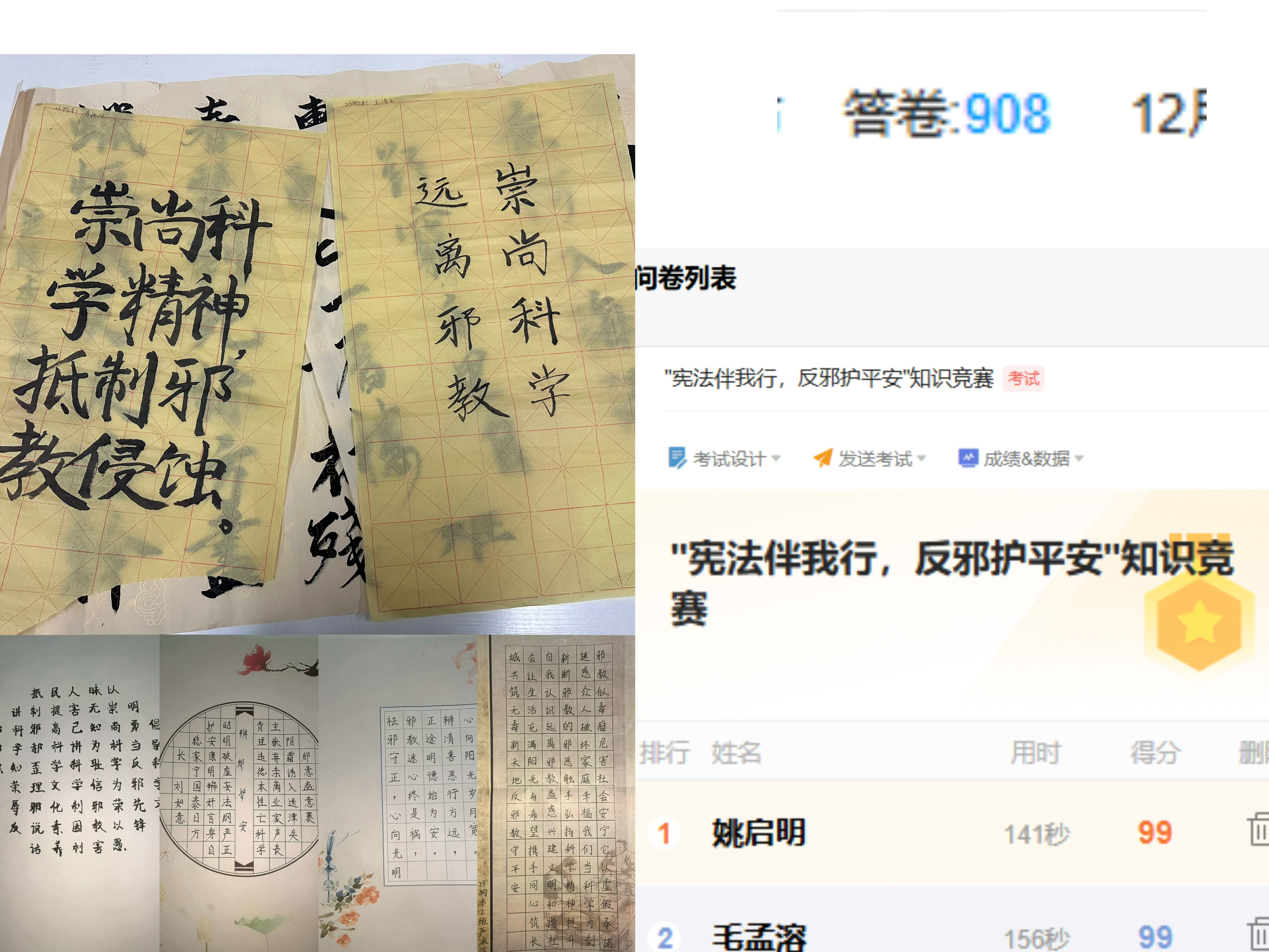 同时,公司组织开展“宪法伴我行,反邪护平安”知识竞赛,竞赛题目涵盖宪法条文,反邪教法律法规及如何识邪防邪等内容,通过以赛促学的方式,推动知识入脑入心。同步开展征文、微电影制作、书法比赛等活动,持续强化员工的法治素养与反邪意识。
