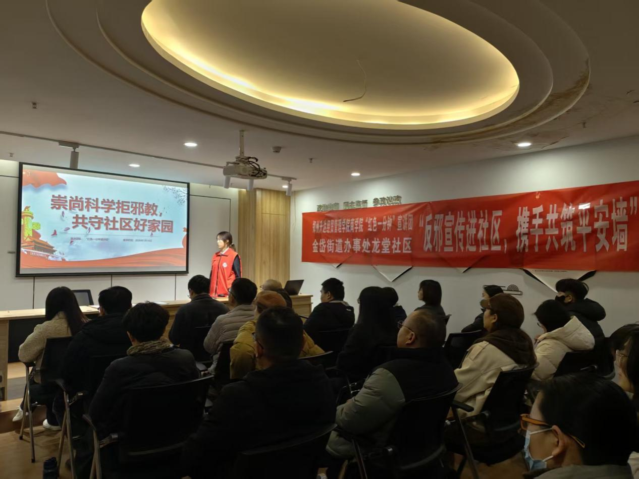 为筑牢社区反邪教思想防线,增强党员群众识邪、防邪、拒邪能力,让平安理念与新春暖意深度交融,yl7703永利集团官网“红色一分钟”宣讲团于2026年1月16日至23日前往郑州市管城回族区金岱街道办事处龙堂社区以“新春反邪齐聚力,幸福家园共守护”为主题,开展反邪教宣讲以及拓福活动等,让反邪理念深入人心,为社区平安注入力量。