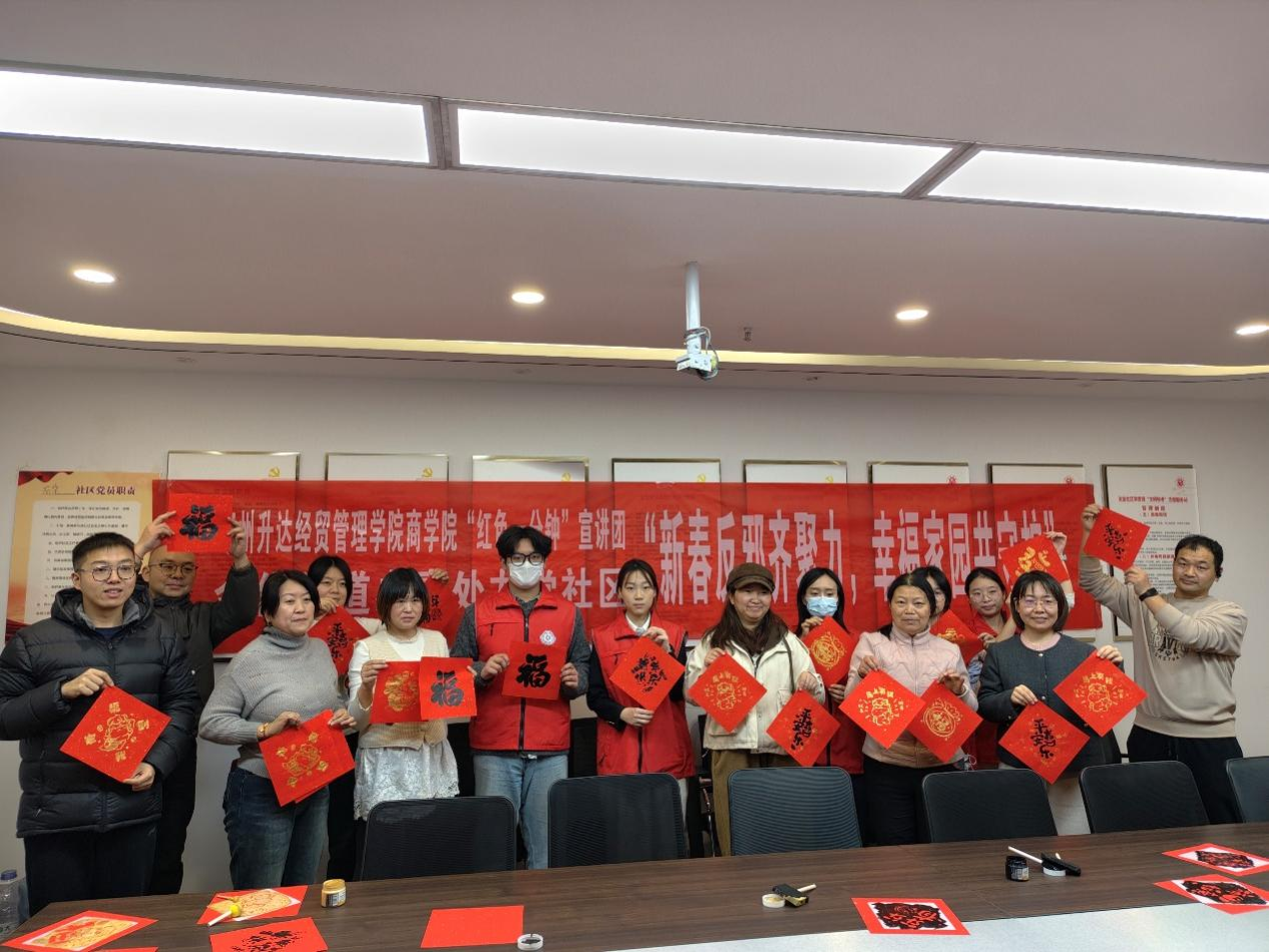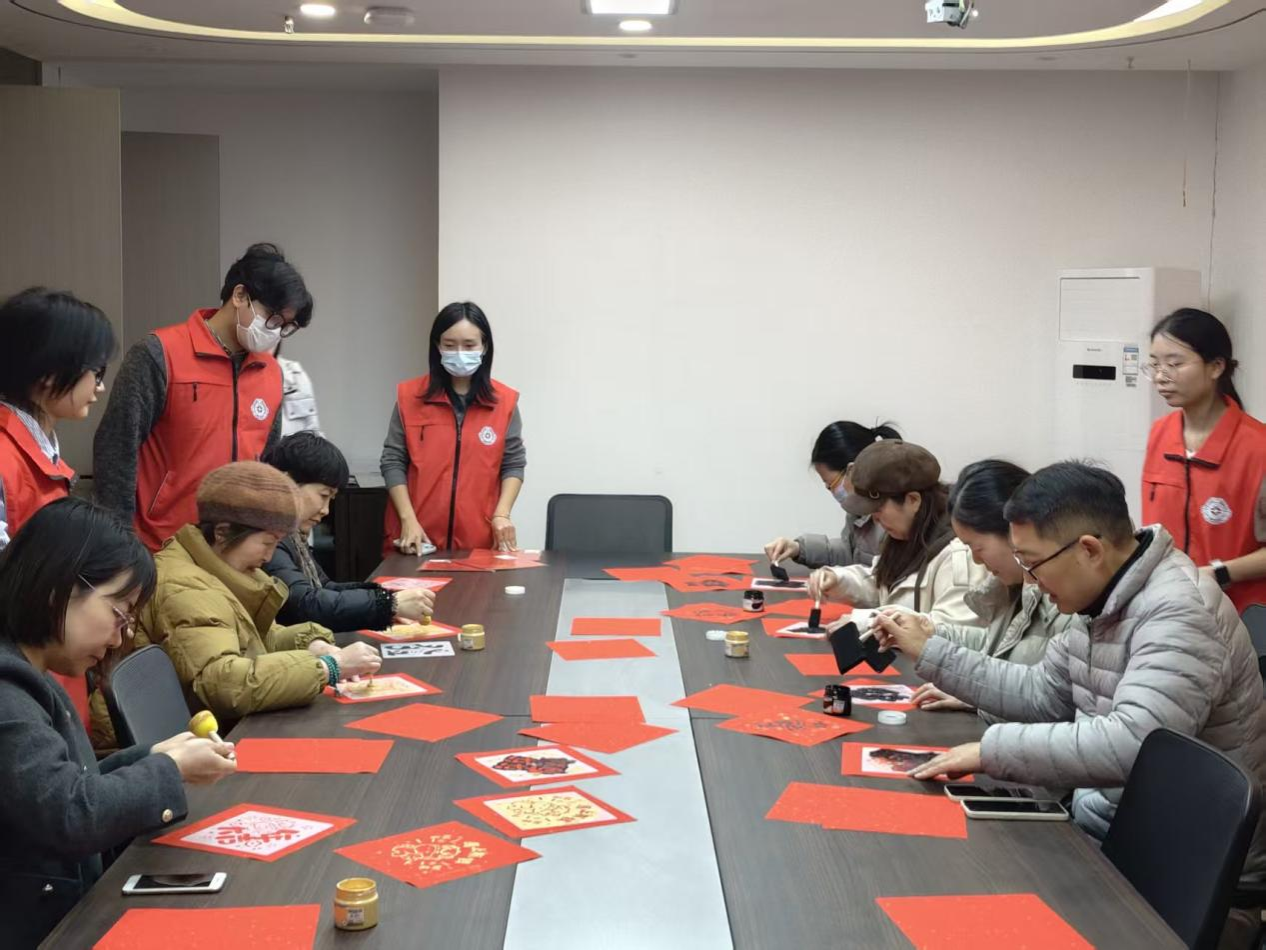 宣讲结束后,充满新春气息的拓印福气活动温馨开启。志愿者们提前备好红纸、墨水和拓印模板,手把手指导和帮助居民们体验拓福工艺,居民们纷纷参与,一幅幅寓意平安吉祥的“福”字跃然纸上。大家一边创作,一边交流反邪感悟,将对美好生活的期盼与拒邪防邪的决心融入纸墨之中。
