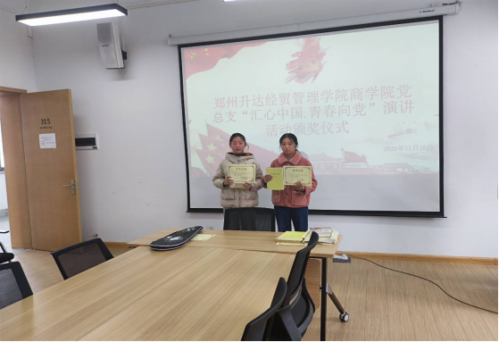 11月26日下午1时,公司党总支在2号教学楼315会议室举行“汇心中国,青春向党”活动颁奖仪式。此次颁奖仪式由公司党总支第四届助理武琳捷主持。