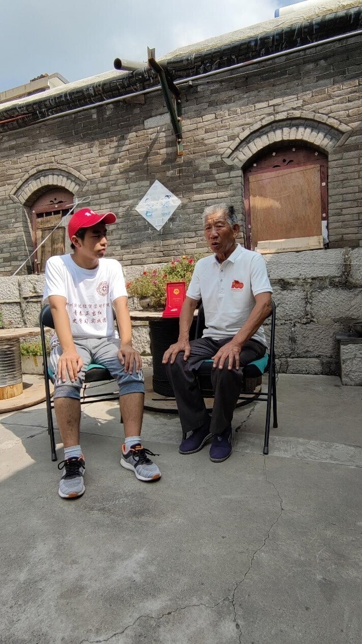 图为团队成员武琳捷来到所在村镇所获“光荣在党50周年”纪念章武世宇家中进行寻访